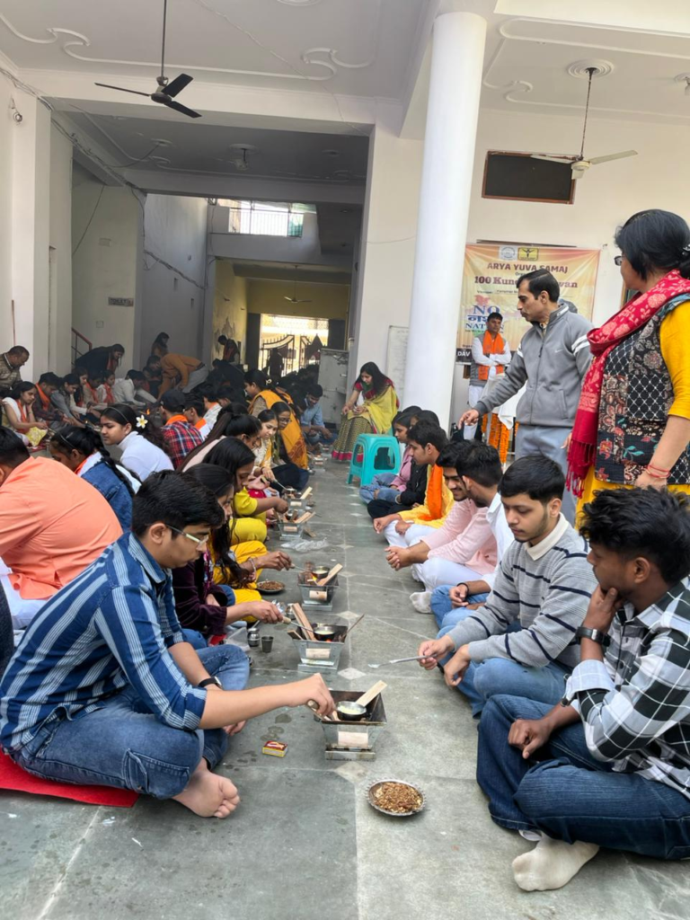 DAV शताब्दी महाविद्यालय द्वारा NIT 3 स्थित हनुमान मंदिर में महर्षि दयानंद सरस्वती जी की 202 वीं जयंती के उपलक्ष्य में 100 कुंडीय हवन महायज्ञ का आयोजन किया | यह महायज्ञ इस वर्ष 4 चरणों आयोजित होने वाली यज्ञ श्रृंखला का द्वितीय चरण रहा, जो अत्यंत श्रद्धा, उत्साह एवं सामाजिक चेतना के साथ संपन्न हुआ। कार्यक्रम का मुख्य उद्देश्य नशा मुक्ति, सामाजिक एकता, सौहार्द, पर्यावरण एवं आध्यात्मिक शुद्धि को बढ़ावा देना रहा। मुख्य अतिथि के रूप में मंदिर प्रधान अजय गुप्ता, कीर्तन मंडली प्रधान नीलम, एवं सुप्रसिद्ध गायक पवन लाड़ला जी रहे। राष्ट्र को नशा मुक्त बनाने के संकल्प के साथ महाविद्यालय से हनुमान मंदिर तक निकाली गई जागरूकता रैली निकाली गई। रैली में विद्यार्थियों एवं शिक्षण तथा ग़ैर-शिक्षण स्टाफ ने बढ़-चढ़कर भाग लिया और समाज को नशे के दुष्प्रभावों से अवगत कराया।