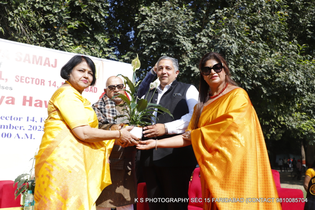 इस पावन अवसर पर मुख्य अतिथि कैबिनेट मंत्री विपुल गोयल, सुहेल शर्मा डी.सी.पी., सी.बी.आई., राष्ट्रीय अध्यक्ष आर्य युवा समाज योगी सूरी , आभा गंगल मैनेजर डी.ए.वी. पब्लिक स्कूल सैक्टर-14 फरीदाबाद, डी.ए.वी. प्रबंधक नवदीप चावला , वी.के. चोपड़ा , रोटेरियन विनय भाटिया , आर डब्ल्यू एम के सदस्य ,विद्यालय की प्रधानाचार्या डॉ. अनीता गौतम , विद्यालय के शिक्षकगण, विद्यार्थीगण एवं अभिभावकगण ने यज्ञ के पावन अवसर पर भाग लेकर भारतीय संस्कृति व संस्कारों की एक अमिट छाप छोड़ी। सांस्कृतिक कार्यक्रम के अंतर्गत विद्यार्थियों द्वारा प्रस्तुत नृत्य व नुक्कड़ नाटक – नो नशा नेशन कीप्रस्तुति ने सभी का मन मोह लिया। कैबिनेट मंत्री विपुल गोयल ने इस अवसर पर अपने वक्तव्य में कहा कि डी.ए.वी. पब्लिक स्कूल सेक्टर 14 फरीदाबाद के विद्यार्थी शिक्षा,खेल हो या अन्य उपलब्धियां संस्कारों को अपनाते हुए निरंतर आगे बढ़ते हैं। विद्यालय की ओर से नशा मुक्ति का जो संदेश समाज को दिया जा रहा है वास्तव में वह देश और समाज के लिए संस्था का अमूल्य योगदान है। यज्ञ द्वारा विद्यार्थियों में नैतिक मूल्यों का जहां विकास होता है वहीं संस्कृति व सभ्यता के ज्ञान का विस्तार भी होता है।
