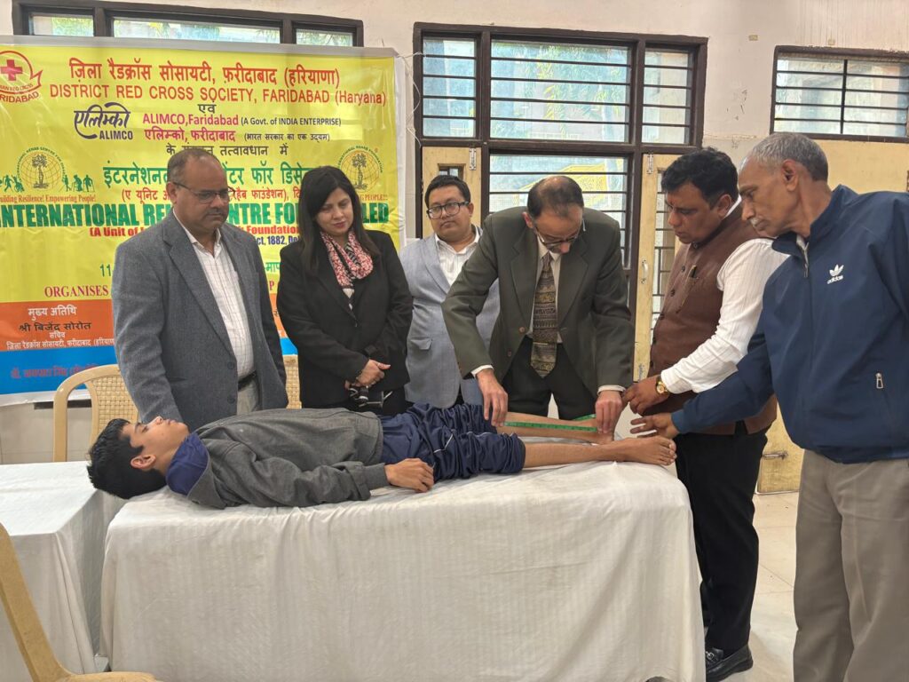आयुष सिन्हा, आईएएस (IAS) उपायुक्त एवं अध्यक्ष जिला रेडक्रॉस सोसाइटी फरीदाबाद के निर्देशानुसार एवं बिजेंद्र सोरौत सचिव, जिला रेडक्रॉस सोसाइटी, फरीदाबाद के मार्गदर्शन मे दिव्यांग व असहाय वरिष्ठ नागरिकों को सक्षम बनाने के लिए जिला रेडक्रास सोसाइटी फरीदाबाद द्वारा संचालित रेडक्रॉस पुनर्वास केंद्र, फरीदाबाद एवं एलिमको ,नवादा फरीदाबाद द्वारा दिल्ली की संस्था इंटरनेशनल रिहैब सेंटर फॉर डिसेबल्ड (यूनिट ऑफ इंटरनेशनल रिहैब फाउंडेशन नई दिल्ली) के सहयोग से एक जांच माप शिविर का आयोजन बालभवन , फरीदाबाद में किया गया, जिसमें 87 दिव्यांगजन एवं वरिष्ठ नागरिकों ने अपना परीक्षण करवाया, जिसमें पांच कैलीपर, 26 हियरिंग एंड, 14 स्मार्टफोन, दो ब्रेल किट, 8 बेस, 3 स्प्लेंडर, 2 कराची, 14 जोड़ी चाय कब कर्दम प्रदान करने के लिए दिव्यांगजन एवं वरिष्ठ नागरिको का पंजीकरण कर लिया गया है। पिछले कई दिनों से रेडक्रॉस सोसाइटी के द्वारा विभिन्न स्वयंसेवी संस्थाओं, दिव्यांगों के लिए चलाए जा रहे स्कूलों एवं रेडक्रॉस पर पहुंचने वाले सभी दिव्यांगजनों को दूरभाष के द्वारा सूचना दे दी गई थी, यह सहायक उपकरण मंदबुद्धि,दृष्टि बाधित, सरवन से संबंधित एवं अस्थि दिव्यांग होने से बचाव में मदद करेंगे l