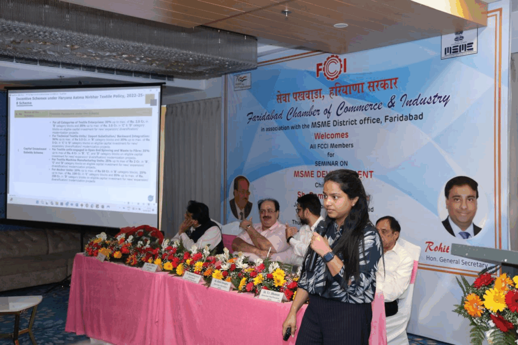 Faridabad: इस मौके पर एमएसएमई फरीदाबाद के ज्वाइंट डायरेक्टर रमनदीप नैन ने उपस्थित सदस्यों एवं आगंतुकों से विभाग द्वारा चलाई जा रही विभिन्न योजनाओं का लाभ उठाने का आह्वाहन किया। नैन ने कहा कि देश के प्रधानमंत्री नरेंद्र मोदी के विकसित भारत के स्वपन को पूरा करने हेतु प्रयासरत है जिसके अंतर्गत विभाग औद्योगिक संगठनों एवं संस्थानों के साथ संयुक्त रूप से कार्यक्रम एवं सेमिनार आयोजित करने हेतु तत्पर है। नैन ने बताया कि विश्व बैंक के साथ संयुक्त मुहिम की आरम्भित की विभाग एमएसएमई सेक्टर के विकास हेतु कटिबद्ध है जिसके लिए निर्यातक एवं नए स्टार्टअप के लिए भिन्न भिन्न योजनाएं जारी है।