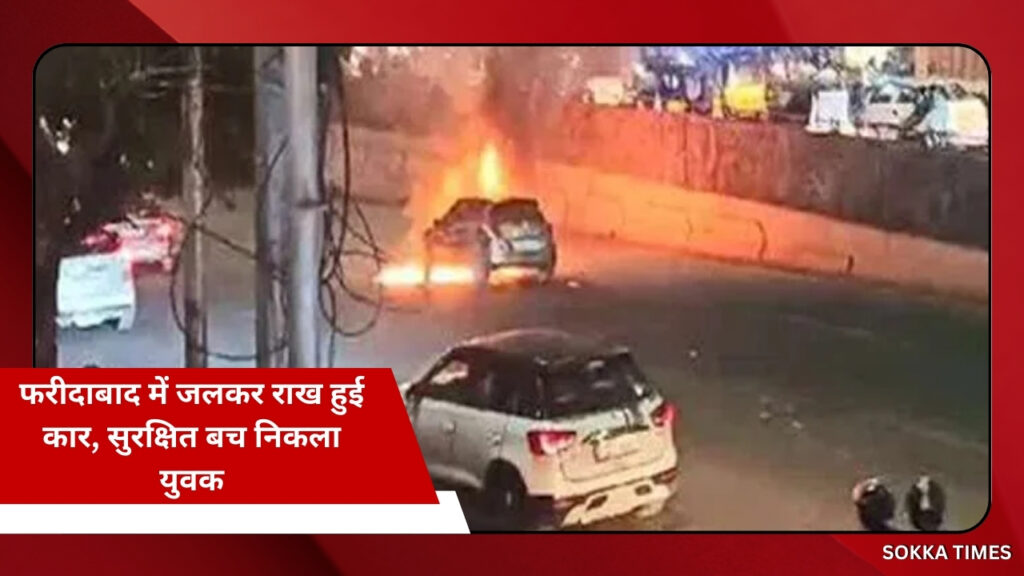 फरीदाबाद में बड़ा हादसा टला: चलते-चलते I20 कार में लगी आग, युवक बाल-बाल बचा