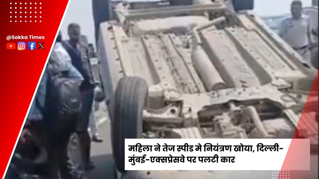 महिला ने तेज स्पीड मे नियंत्रण खोया, दिल्ली-मुंबई-एक्सप्रेसवे पर पलटी कार
