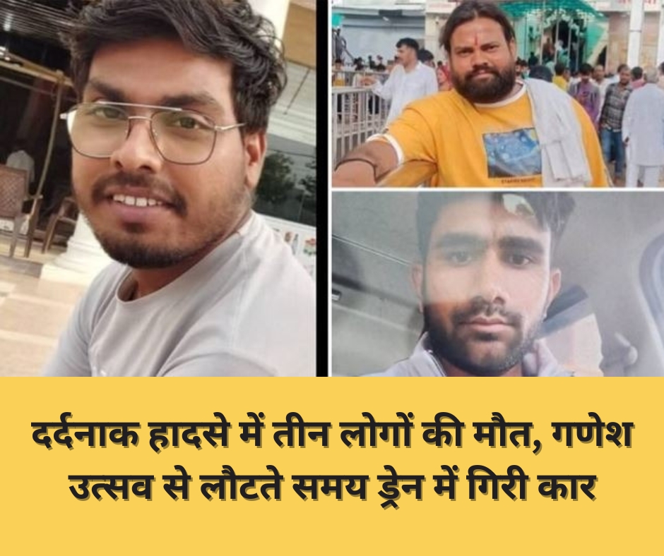 दर्दनाक हादसे में तीन लोगों की मौत, गणेश उत्सव से लौटते समय ड्रेन में गिरी कार