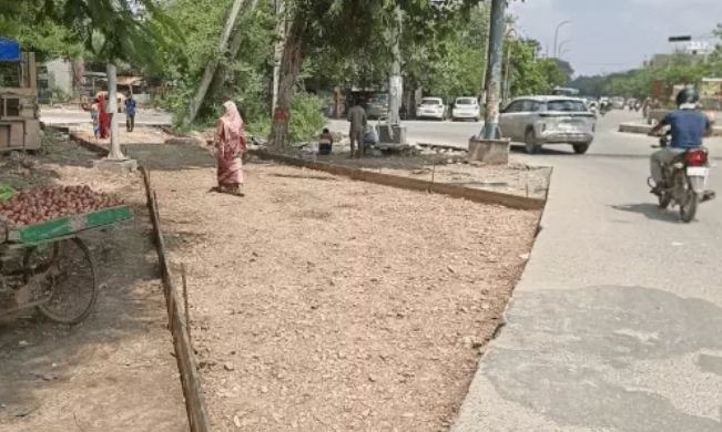 एक साल से अधूरा पड़ा है गोल चक्कर, यातायात हो रहा प्रभावित