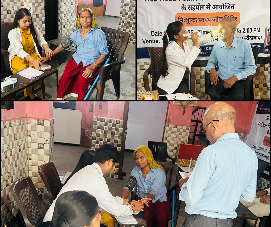 Faridabad : डॉ. सूरज प्रकाश आरोग्य केंद्र ने रेड रॉस पब्लिक स्कूल व शर्मा मेडिकोज के साथ मिलकर लगाया मुफ्त जांच शिविर