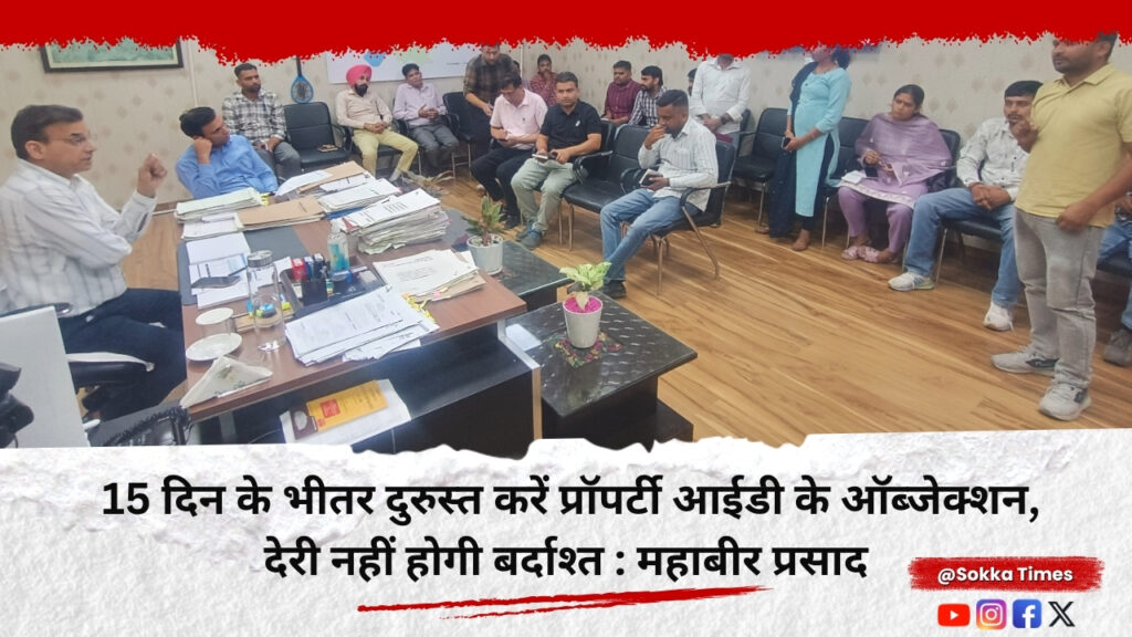 15 दिन के भीतर दुरुस्त करें प्रॉपर्टी आईडी के ऑब्जेक्शन, देरी नहीं होगी बर्दाश्त : महाबीर प्रसाद