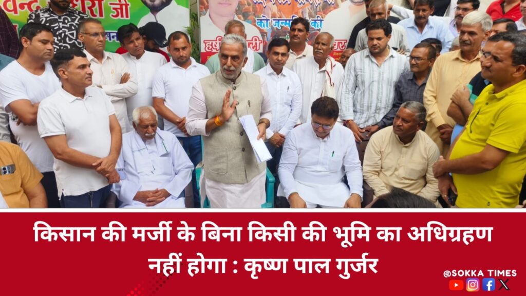 किसान की मर्जी के बिना किसी की भूमि का अधिग्रहण नहीं होगा : कृष्ण पाल गुर्जर
