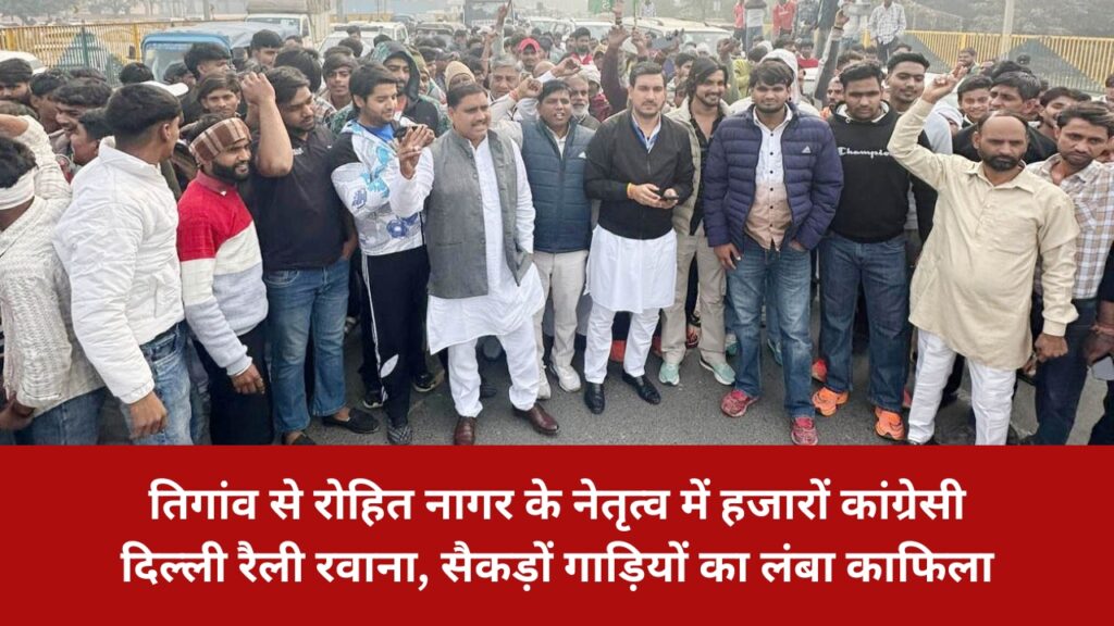 तिगांव से रोहित नागर के नेतृत्व में हजारों कांग्रेसी दिल्ली रैली रवाना, सैकड़ों गाड़ियों का लंबा काफिला