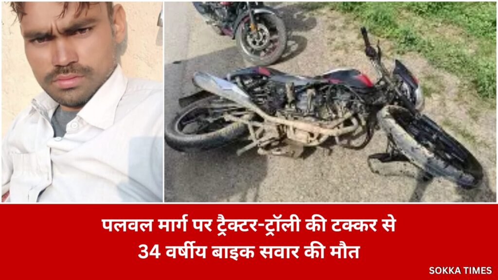 पलवल मार्ग पर गांव सिलानी के पास ट्रैक्टर-ट्रॉली की टक्कर से बाइक सवार 34 वर्षीय