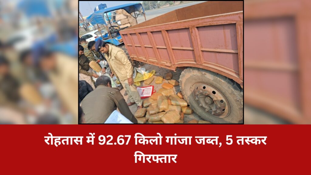 रोहतास में 92.67 किलो गांजा जब्त, 5 तस्कर गिरफ्तार
