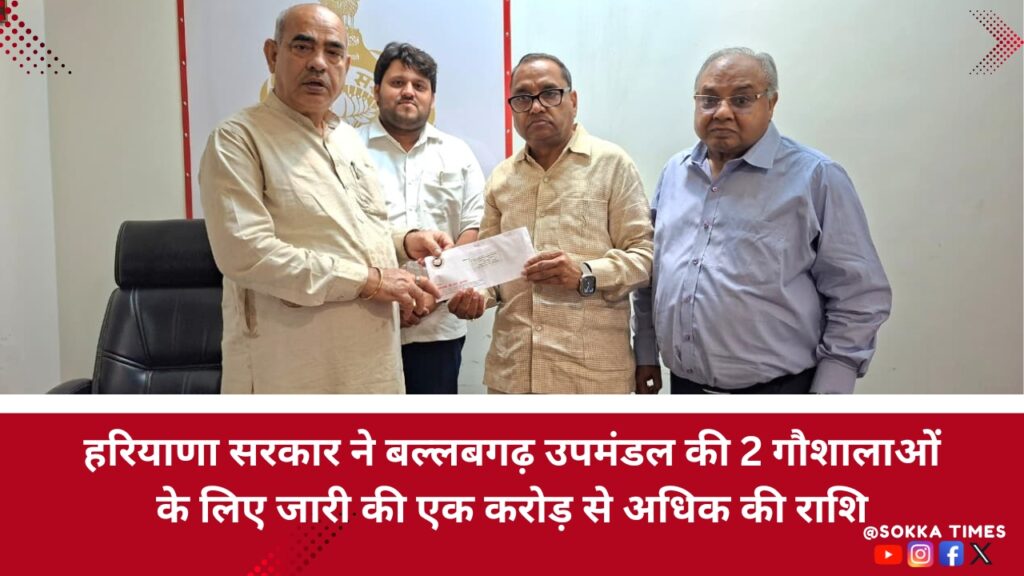 हरियाणा सरकार ने बल्लबगढ़ उपमंडल की 2 गौशालाओं के लिए जारी की एक करोड़ से अधिक की राशि