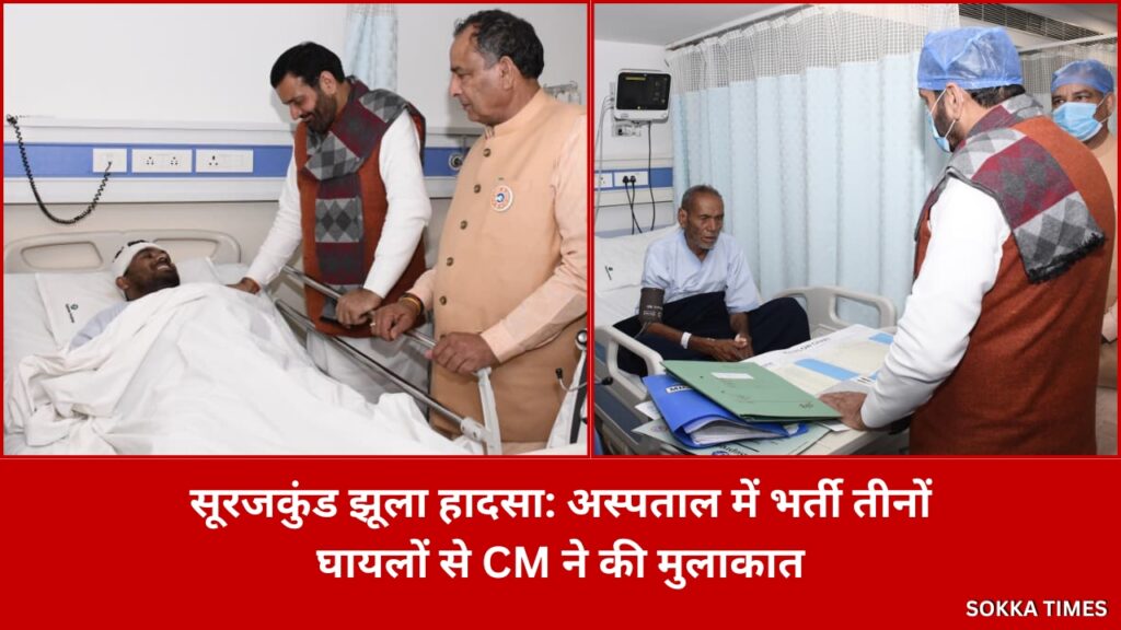 Faridabad: अस्पताल में भर्ती झूला हादसा पीड़ितों से मिले मुख्यमंत्री नायब सिंह सैनी
