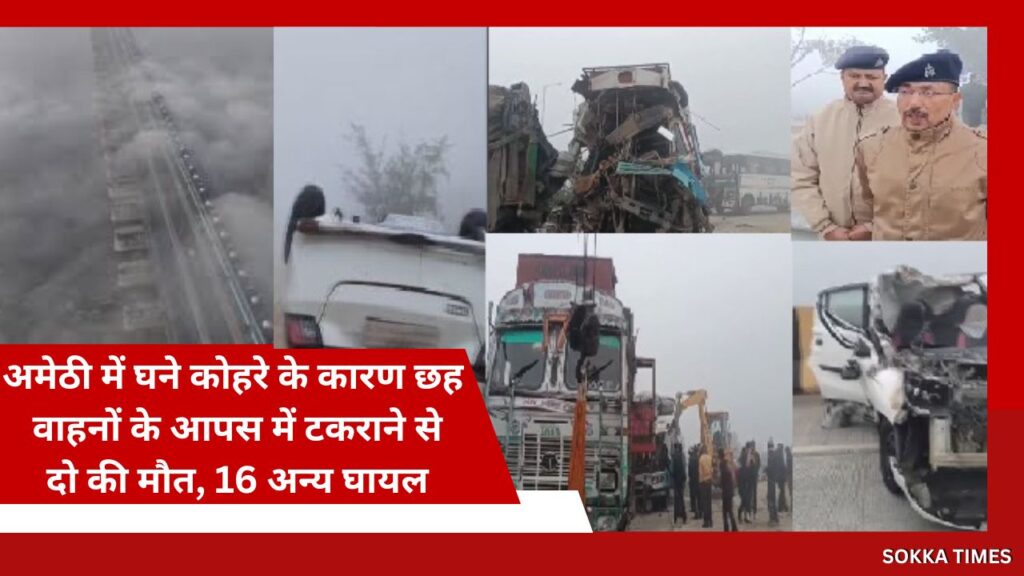 अमेठी में भीषण हादसा: घने कोहरे के कारण 6 वाहनों की टक्कर, 2 की मौत, 16 घायल