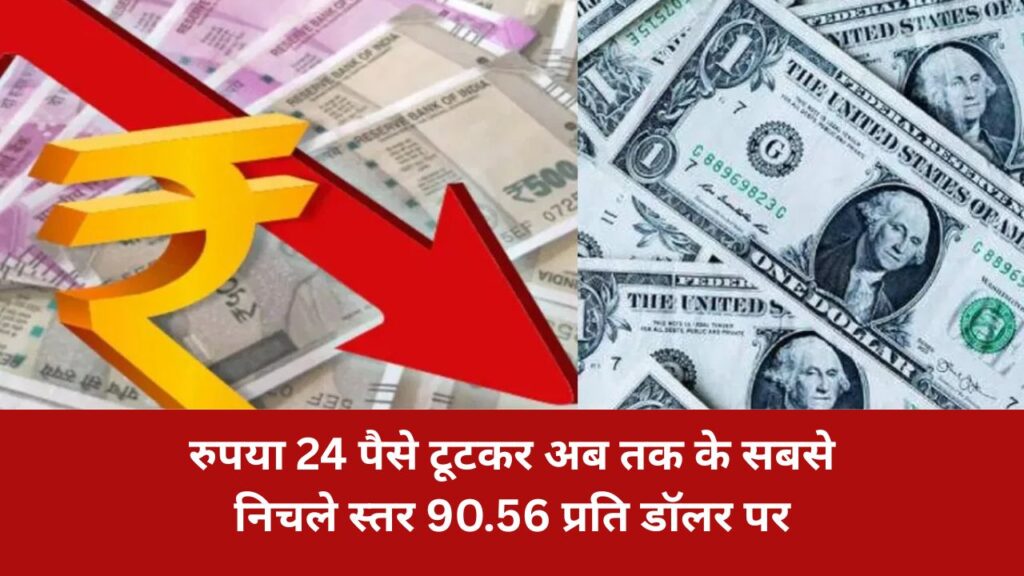 रुपया 24 पैसे टूटकर अब तक के सबसे निचले स्तर 90.56 प्रति डॉलर पर