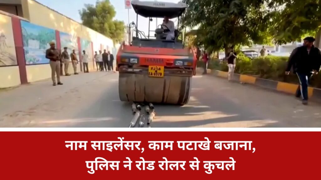 जयपुर पुलिस का बड़ा एक्शन , 150 मॉडिफाइड साइलेंसर को रोड रोलर से कुचला
