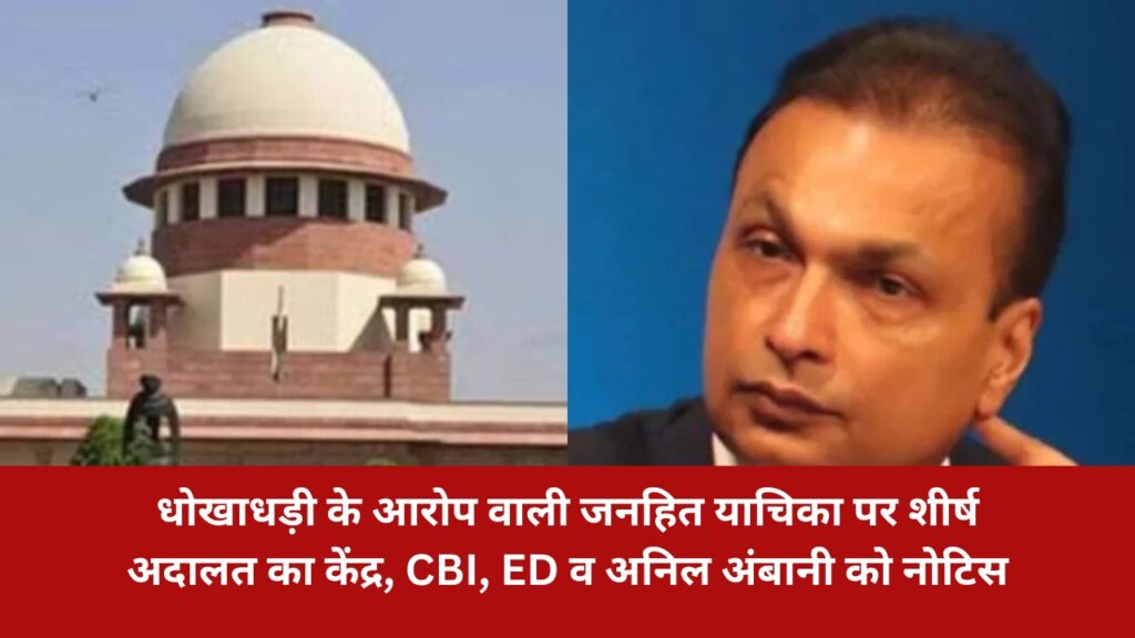 धोखाधड़ी के आरोप वाली जनहित याचिका पर शीर्ष अदालत का केंद्र, CBI, ED व अनिल अंबानी को नोटिस