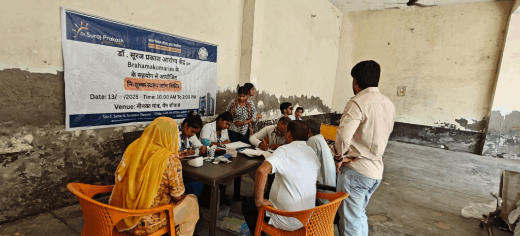 Faridabad: सेक्टर 8 स्थित डॉ. सूरज प्रकाश आरोग्य केंद्र 13 सितंबर को ब्रह्मकुमारीज के साथ मिलकर नीमका गांव में मुफ्त जांच शिविर लगाया। जिसमें 76 लोगों ने अपनी जांच कराई।