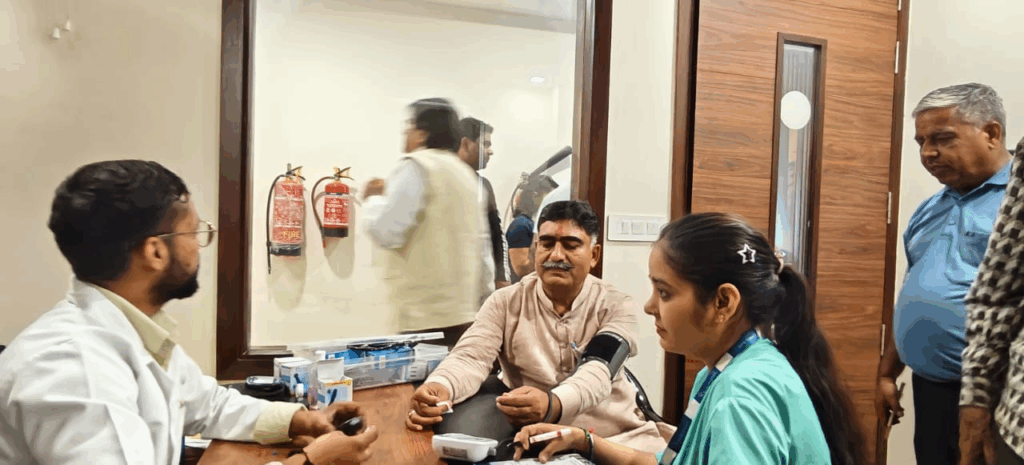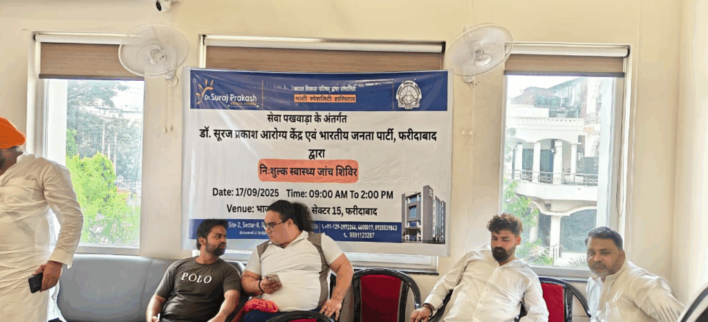 Faridabad : सेक्टर 8 स्थित डॉ. सूरज प्रकाश आरोग्य केंद्र ने 17 सितंबर को भारतीय जनता पार्टी, फरीदाबाद के साथ मिलकर सेक्टर 15 अटल कलम केंद्र में मुफ्त जांच शिविर का आयोजन किया। जिसमें 280 लोगों ने अपनी जांच कराई।