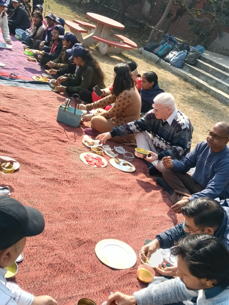 जिसमें महाविद्यालय के प्राचार्य छात्राओं तथा स्टाॅफ सदस्यों द्वारा एक साथ भोजन ग्रहण किया। इस सामुदायिक भोज ने शिक्षक -छात्राओं के बीच पारस्परिक सद्भाव, समानता व एकता की भावना को मजबूत किया । प्राचार्य ने कहा कि समाज के कोई भी व्यक्ति जन्म, धर्म व जाति से छोटा बड़ा नहीं होता । इंसान अपने कर्माें से ही छोटा बड़ा होता है । इसलिए हमेशा अच्छे कर्ममार्ग का चयन करें। NSS इकाई इंचार्ज डा. रचना सैनी ने महाविद्यालय में आयोजित होने वाली हर गतिविधि में एनएसएस की छात्राओं की सक्रिय भूमिका की सराहना की तथा इकाई द्वारा भविष्य में आयोजित होने वाली गतिविधियों के बारे में विस्तारपूर्वक जानकारी दी ।