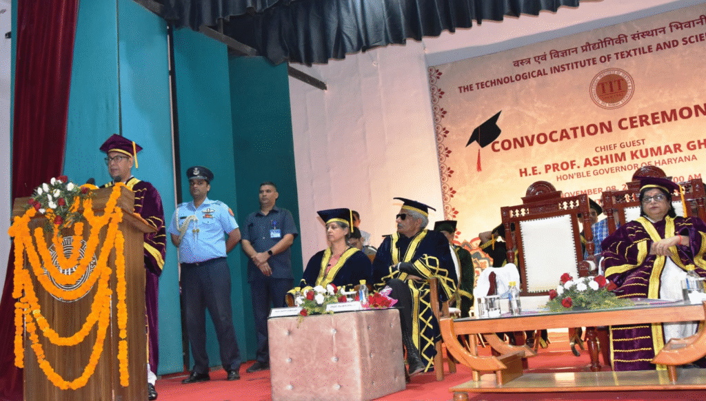हरियाणा के राज्यपाल माननीय प्रो. असीम कुमार घोष ने कहा हरियाणा जैसे प्रगतिशील राज्य में द टेक्नोलॉजिकल इंस्टिट्यूट ऑफ टेक्सटाइल एंड साइंसेज जैसी संस्थाएं राज्य की औद्योगिक क्षमता और मानव संसाधन को सशक्त बना रही हैं। भविष्य के भारत को ऐसे ही संस्थानों की आवश्यकता है। उन्होंने विद्यार्थियों से आह्वान किया कि वे शिक्षण के साथ-साथ नैतिक मूल्यों को भी जीवन में धारण करें और समाज व राष्ट्र की समृद्धि में महत्वपूर्ण भूमिका निभाएं। डिग्री केवल एक दस्तावेज नहीं, बल्कि यह एक जिम्मेदारी का प्रतीक और समाज के प्रति एक वचन है।