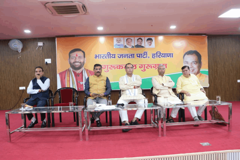 भाजपा प्रदेश अध्यक्ष पंडित मोहन लाल बड़ौली की अध्यक्षता में शुक्रवार को गुरुग्राम स्थित भाजपा कार्यालय गुरुकमल में दो महत्वपूर्ण बैठकें हुई। इन बैठकों में प्रधानमंत्री नरेंद्र मोदी के जन्म दिवस के उपलक्ष्य में होने वाले सेवा के कार्यक्रमों की रूपरेखा तैयार की गई। इन बैठकों प्रदेश अध्यक्ष मोहन लाल बड़ौली के साथ राष्ट्रीय सचिव ओम प्रकाश धनखड़, राष्ट्रीय कार्यालय सचिव महेंद्र पांडे, राष्ट्रीय सह कोषाध्यक्ष एवं राज्यसभा सांसद नरेश बंसल, संगठन मंत्री फणीन्द्रनाथ शर्मा, प्रदेश महामंत्री एवं कैबिनेट मंत्री कृष्ण बेदी, प्रदेश महामंत्री डा. अर्चना गुप्ता, प्रदेश कार्यालय सचिव गुलशन भाटिया के अलावा सभी जिलों के अध्यक्ष, जिला प्रभारी और कार्यालय समिति के सदस्य मौजूद रहे। राष्ट्रीय कार्यालय सचिव ने बैठक में कार्यालयों की देख रेख और सुचारू व्यवस्था के लिए जरूरी दिशा निर्देश दिए। कार्यालय पहुंचने पर भाजपा जिला अध्यक्ष सर्वप्रिय त्यागी ने सभी नेताओं का स्वागत किया।