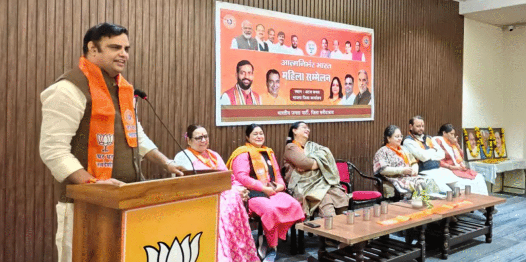 भाजपा जिला कार्यालय पर आत्मनिर्भर भारत के तहत आयोजित महिला सम्मलेन में बोलते हुए जिला अध्यक्ष पंकज पूजन रामपाल ने कहा कि आत्मनिर्भर भारत के निर्माण में महिलाओं का योगदान अमूल्य है। भारत के हर कोने में महिलाएँ घर-घर में स्वदेशी उत्पाद बनाकर न सिर्फ आत्मनिर्भर बनी हैं, बल्कि देश का मान-सम्मान भी बढ़ा रही हैं और आर्थिक सशक्तिकरण भी कर रही है । उन्होंने प्रधानमंत्री की दूरदर्शी सोच का उल्लेख करते हुए कहा कि विश्वगुरु और विकसित भारत का सपना साकार करने का मार्ग स्वदेशी से होकर गुजरता है। कोविड काल में भारत ने आपदा को अवसर में बदलते हुए आत्मनिर्भरता की नई मिसाल पेश की और वे उत्पाद भी देश में बनने लगे जिनके लिए हम पहले विदेशों पर निर्भर थे। उन्होंने महिलाओं से आग्रह किया कि वे स्वदेशी उत्पादन की दिशा में और अधिक सक्रिय भूमिका निभाएँ और देश को आत्मनिर्भर बनाने में अपना महत्वपूर्ण योगदान दें।